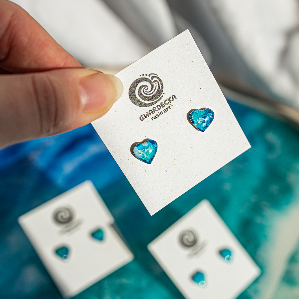 Kolczyki sztyfty malowane żywicą „kropla oceanu” 12mm