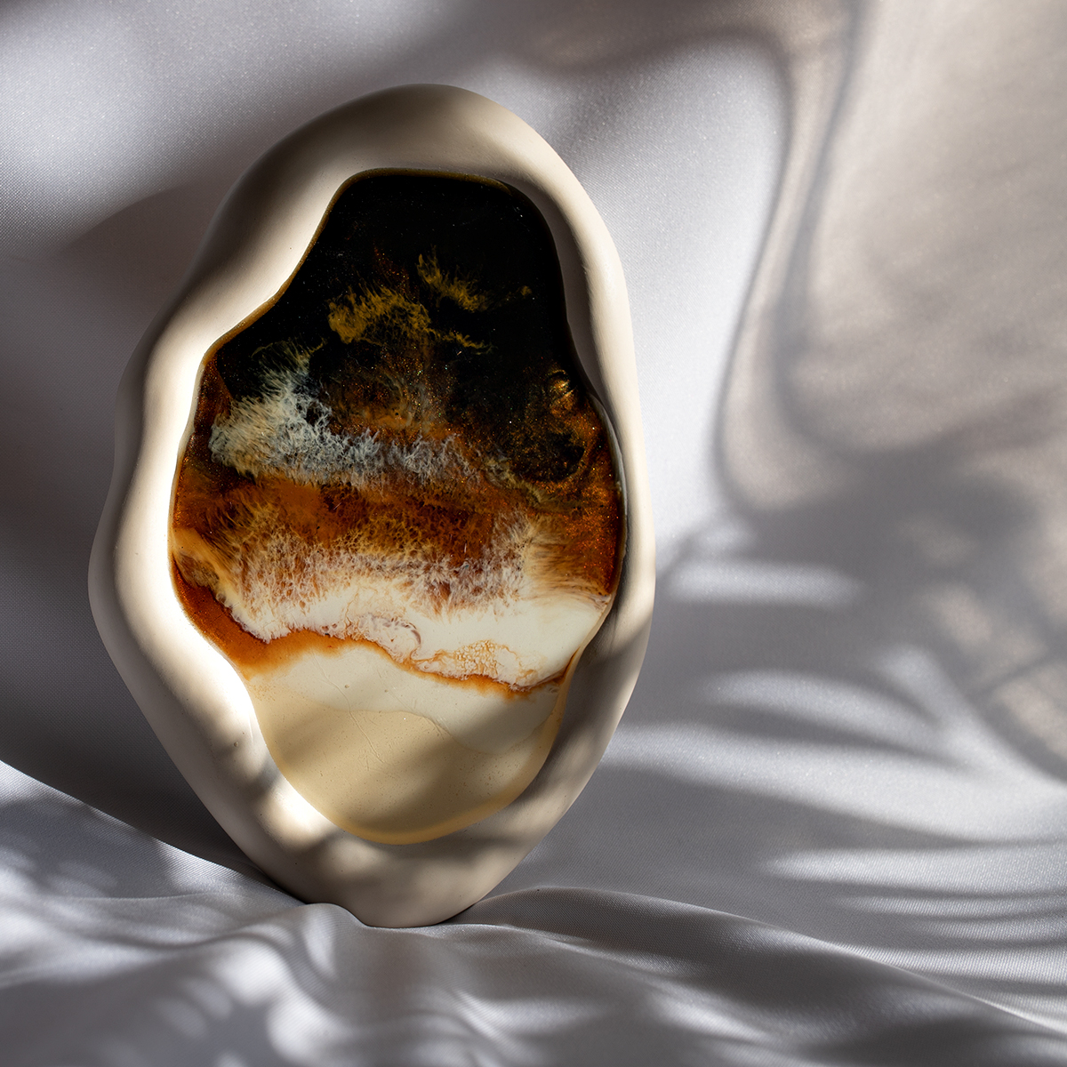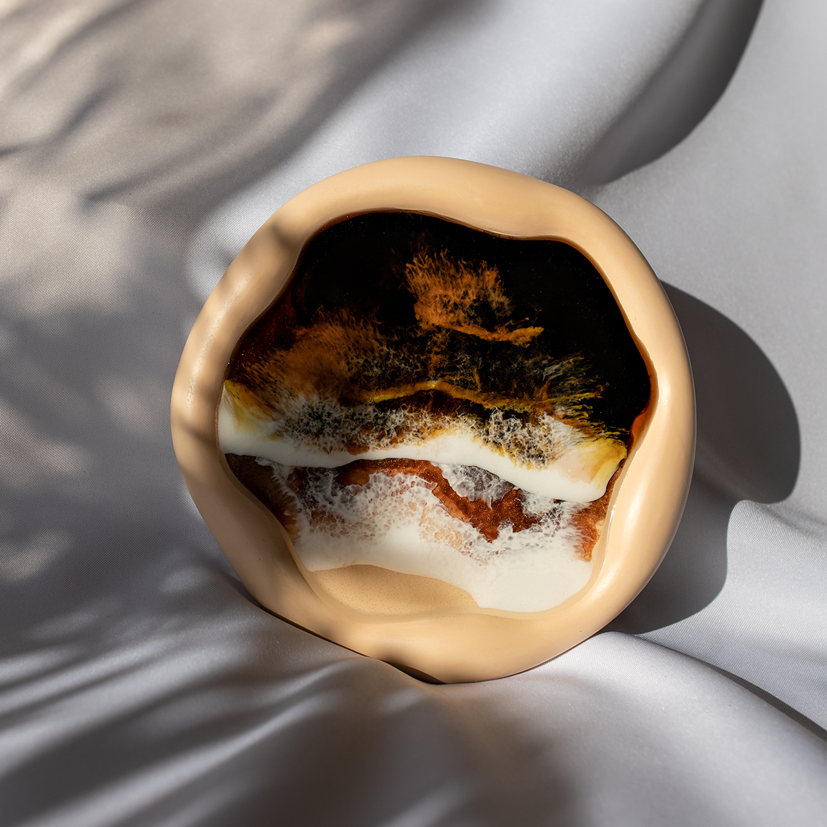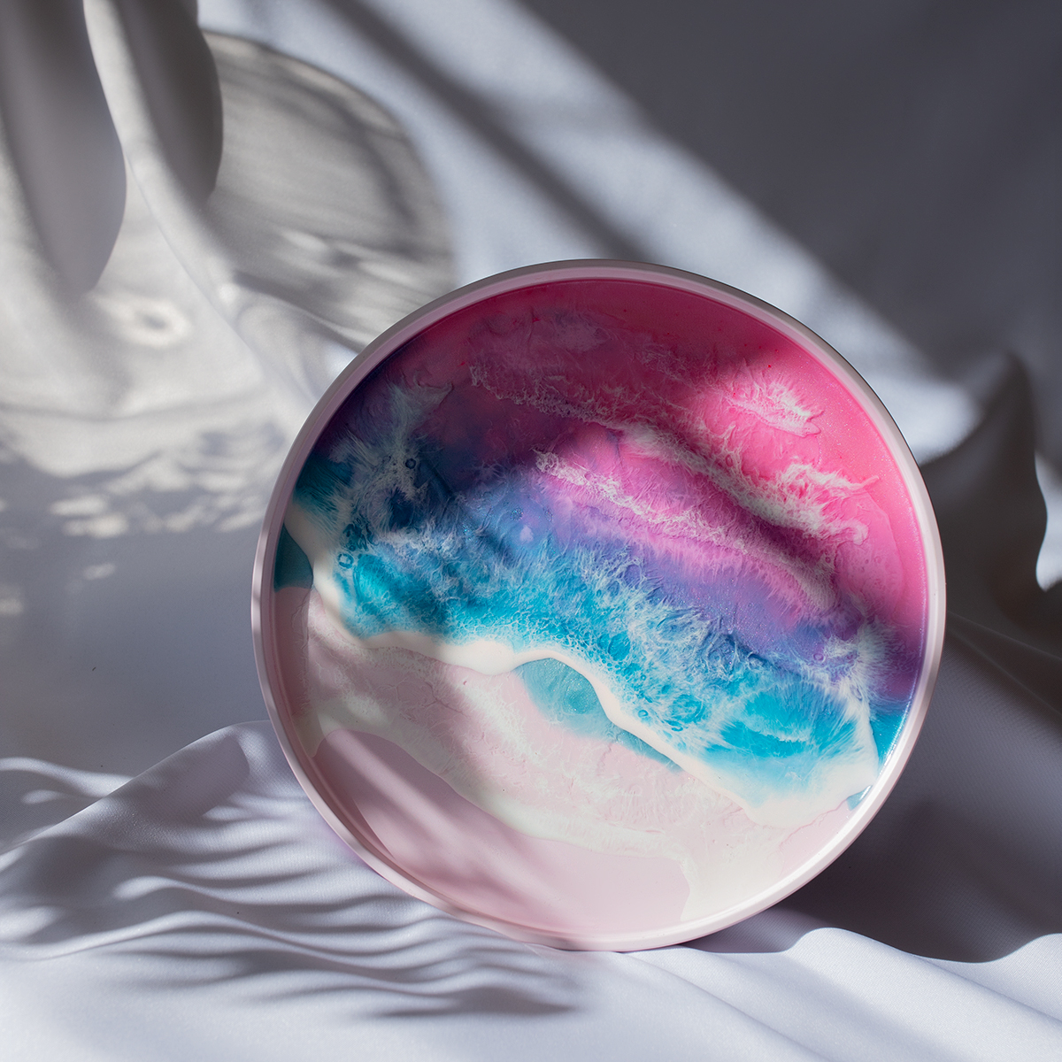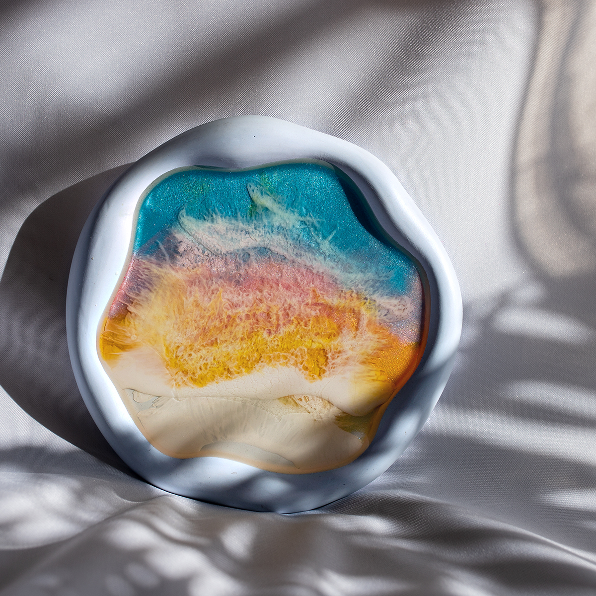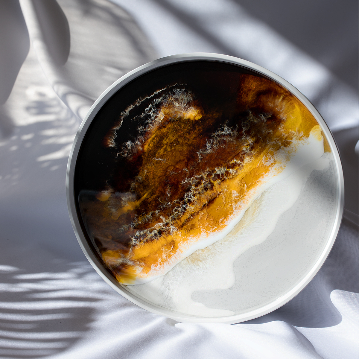 Taca malowana żywicą epoksydową techniką warstwową Ø30 cm, na spodzie gipsowym