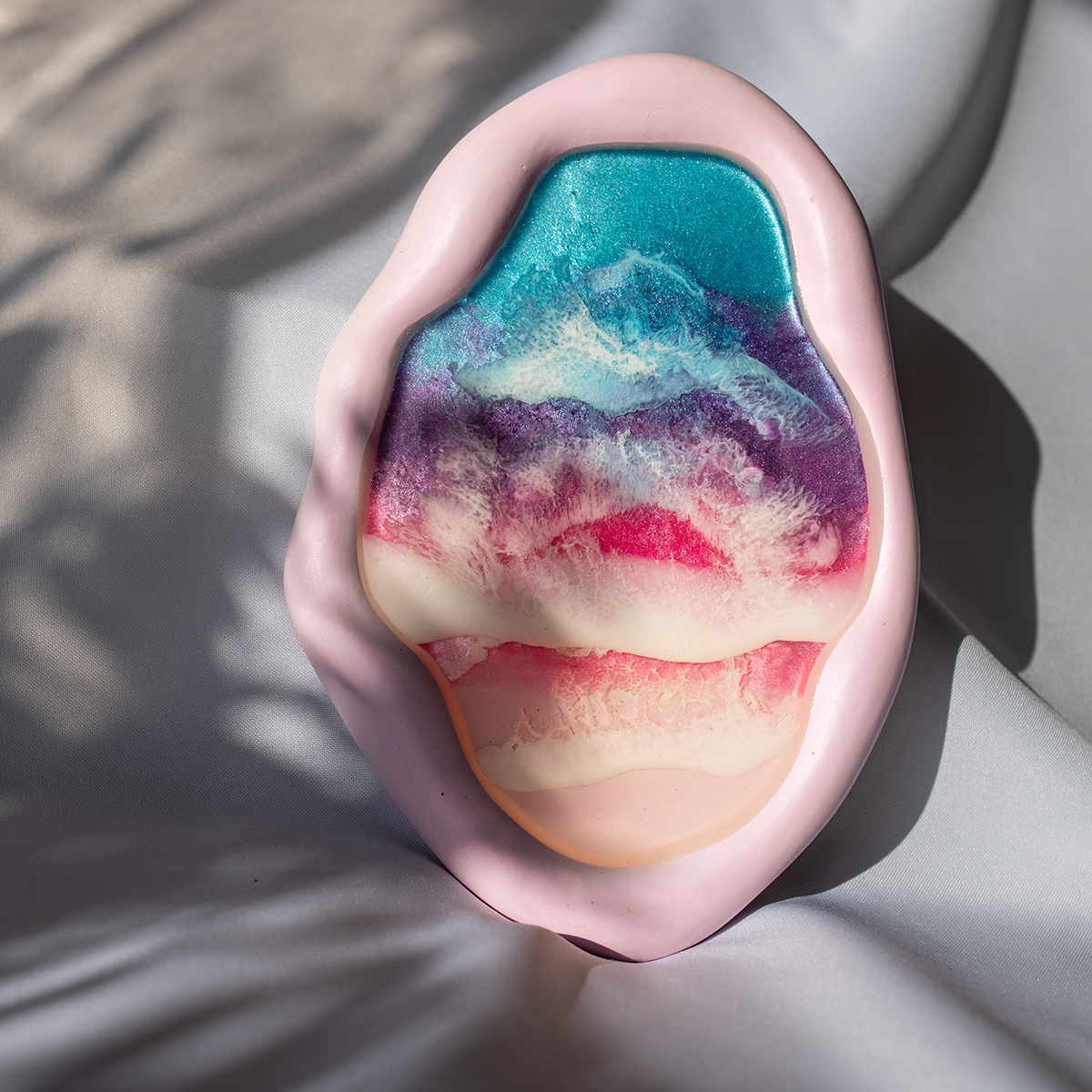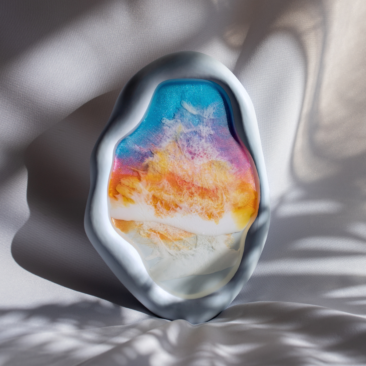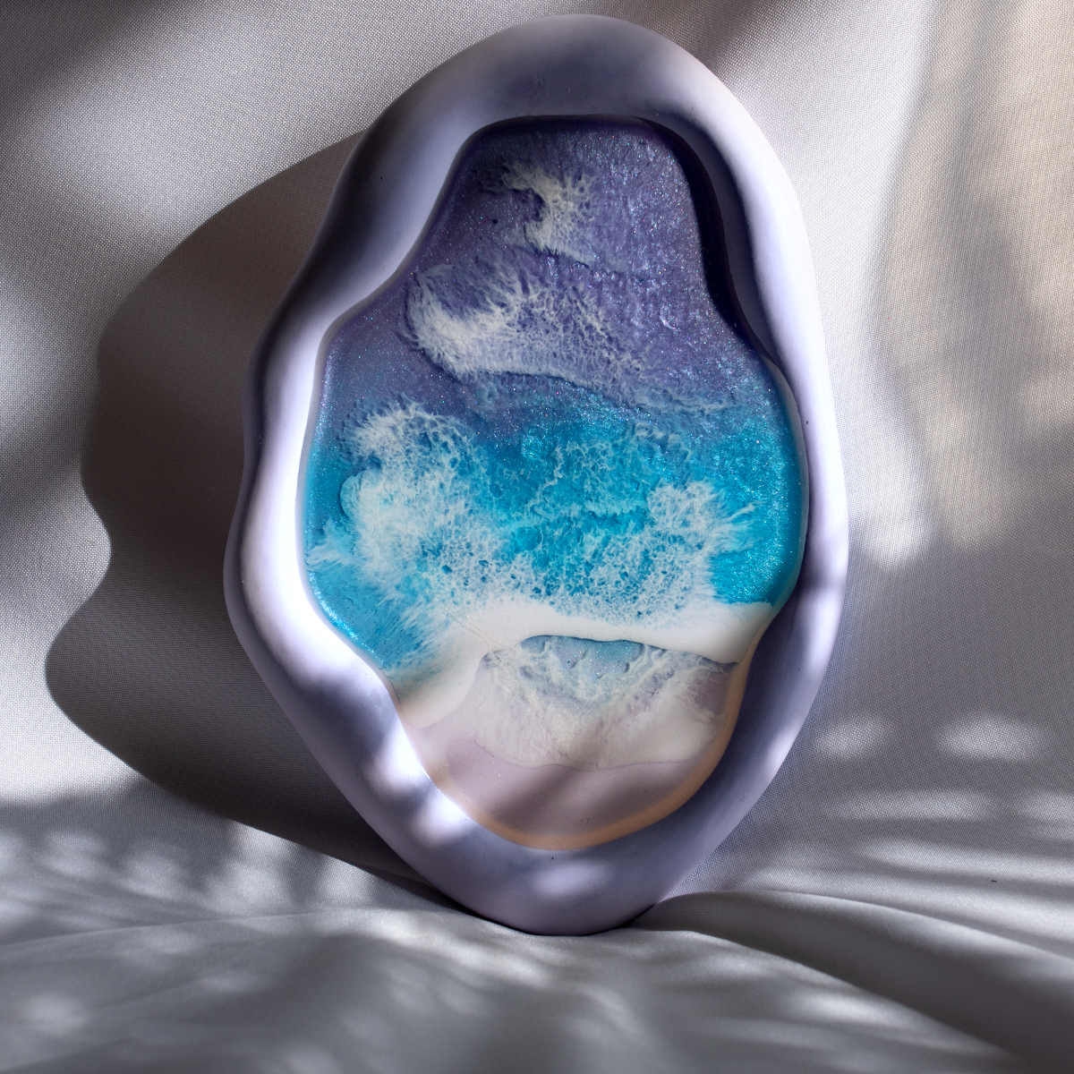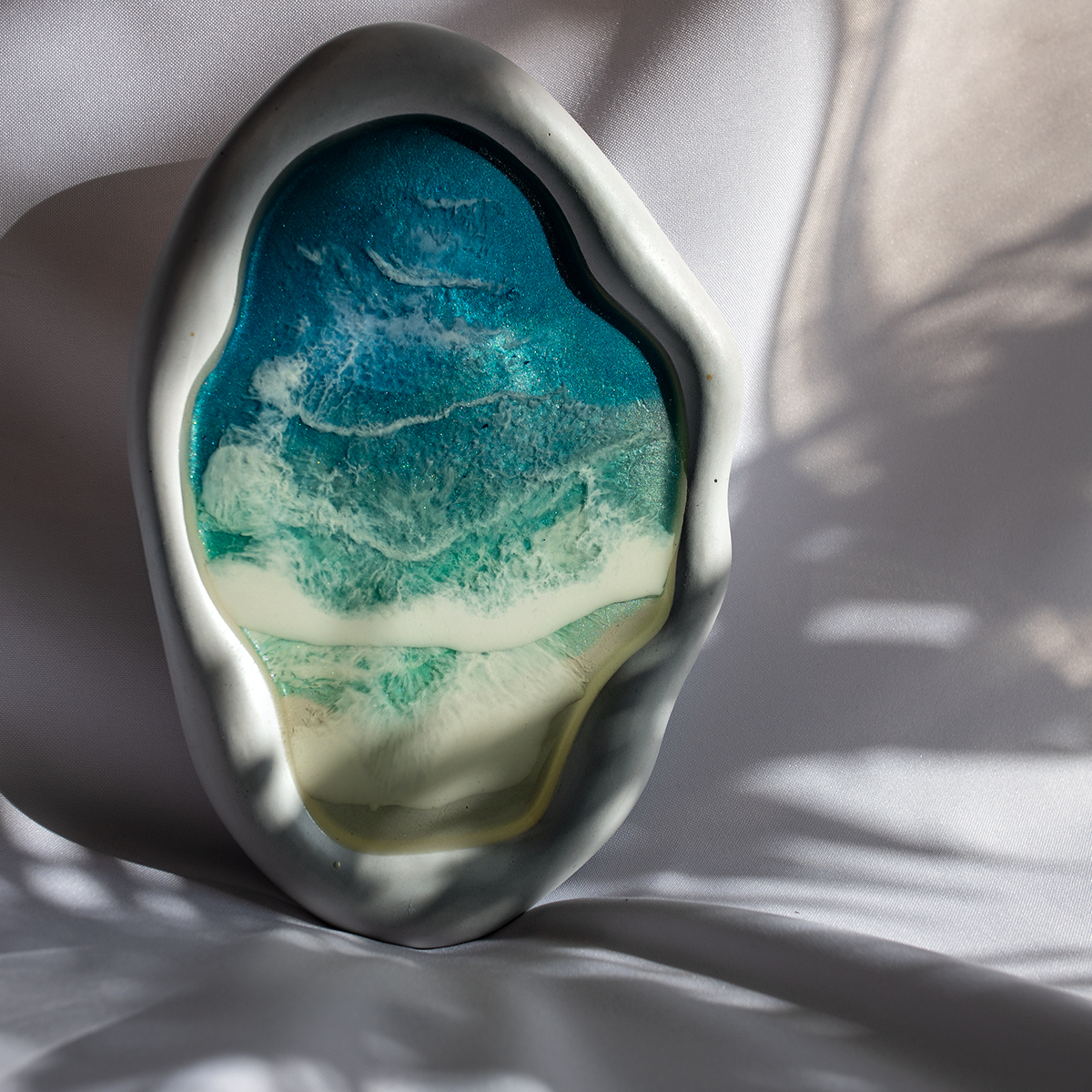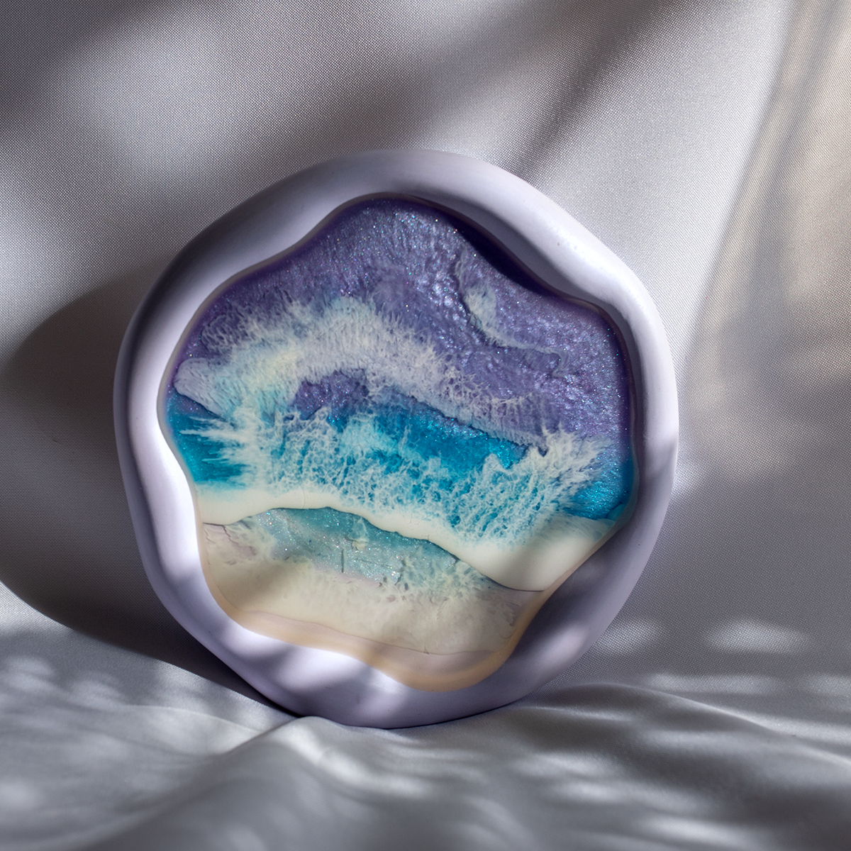 Taca malowana żywicą epoksydową techniką warstwową Ø30 cm, na spodzie gipsowym