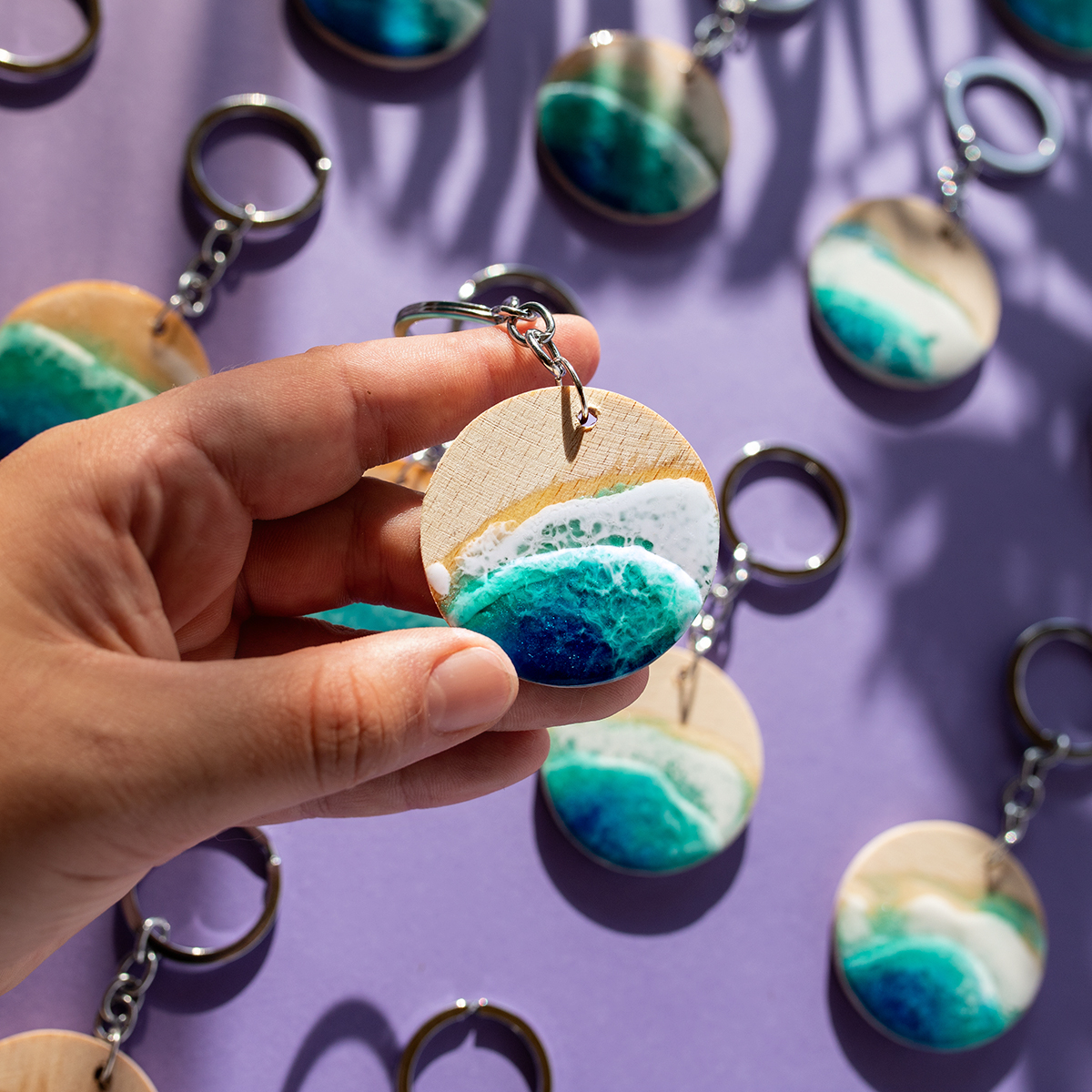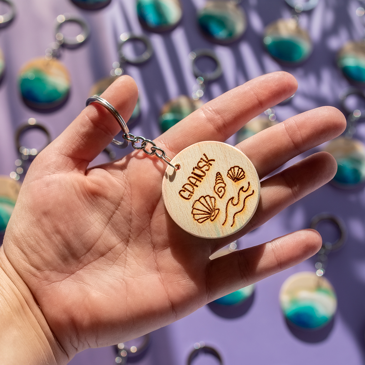 Każdy breloczek tworzę ręcznie, na bukowym drewnie, malowany 2 warstwami żywicy,
