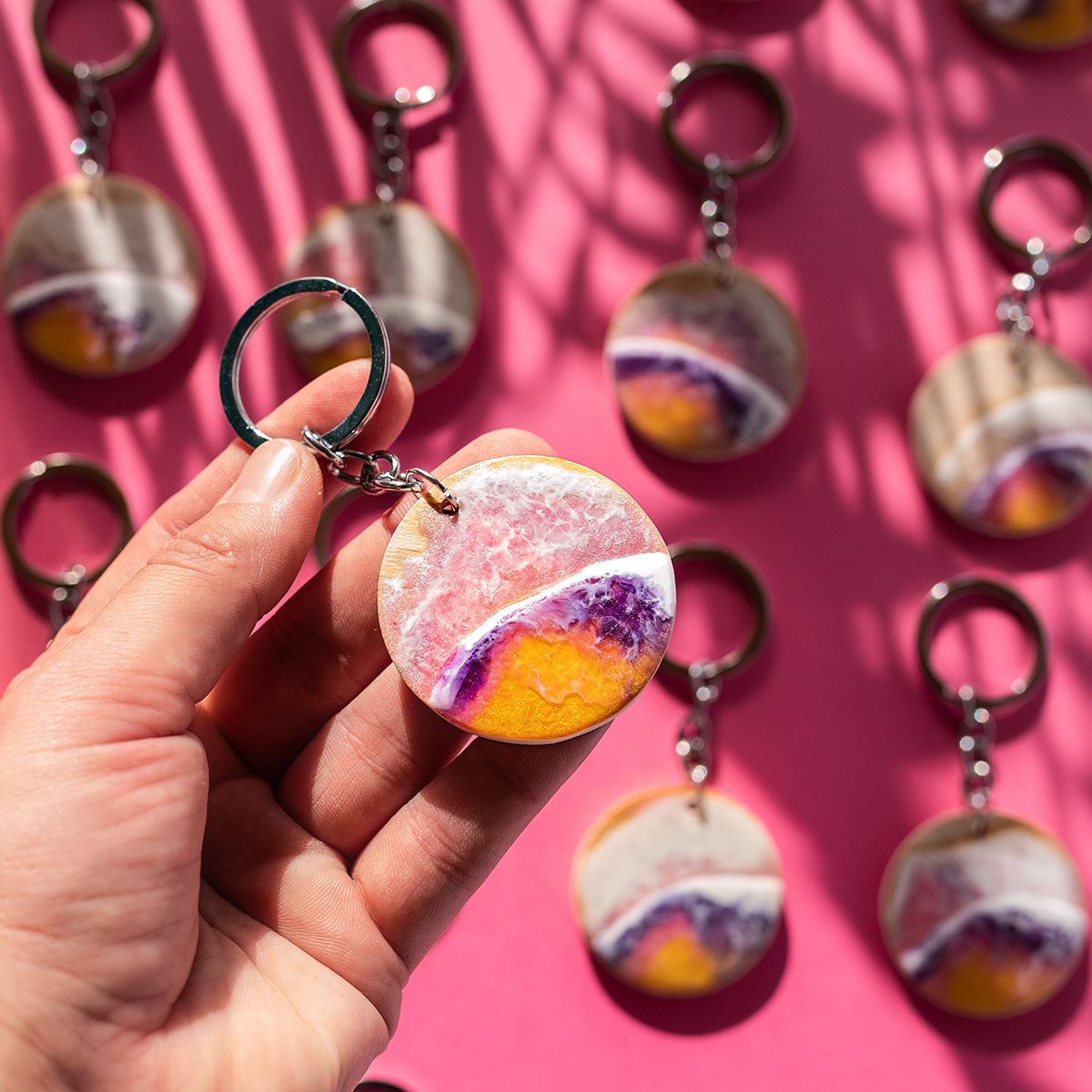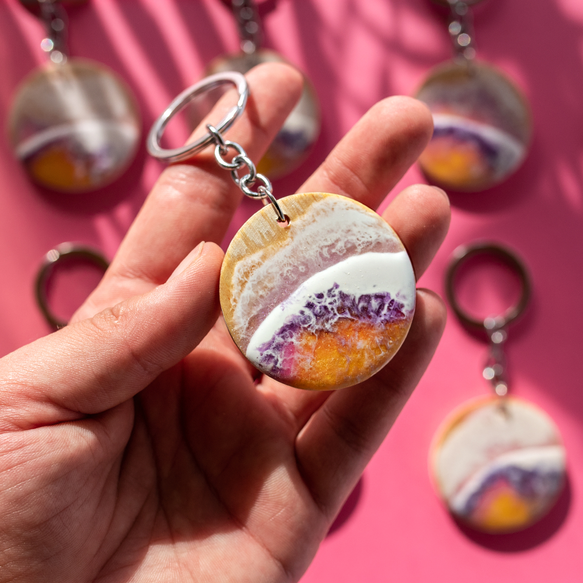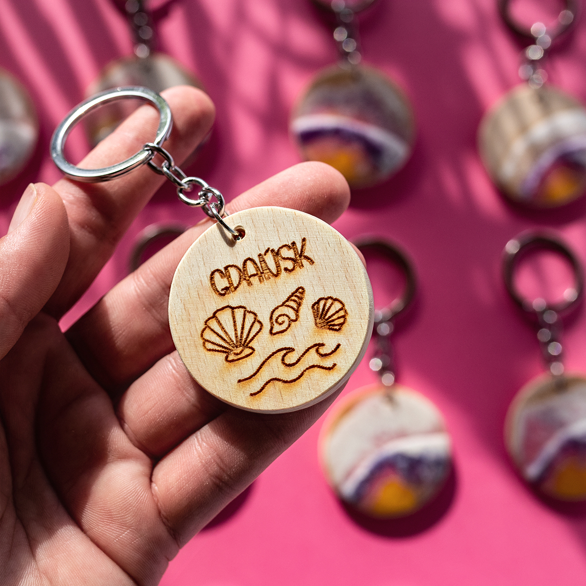 Każdy breloczek tworzę ręcznie, na bukowym drewnie, malowany 2 warstwami żywicy,