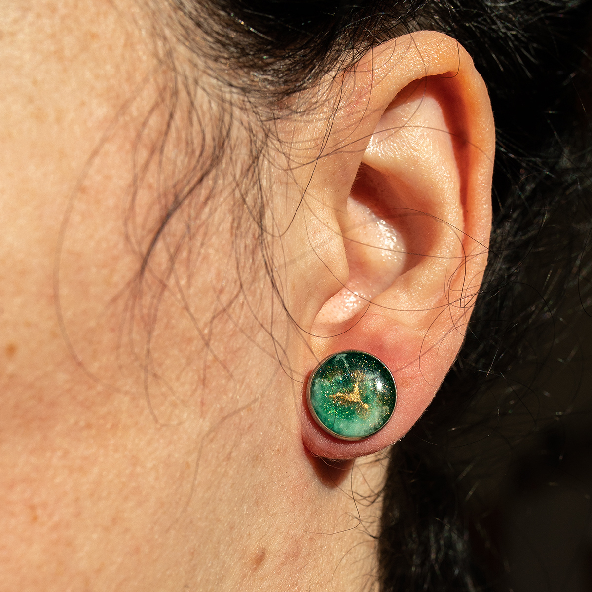 Kolczyki maluje 3 warstwami żywicy epoksydowej, by uzyskać delikatnie 3wymiarowy efekt.
