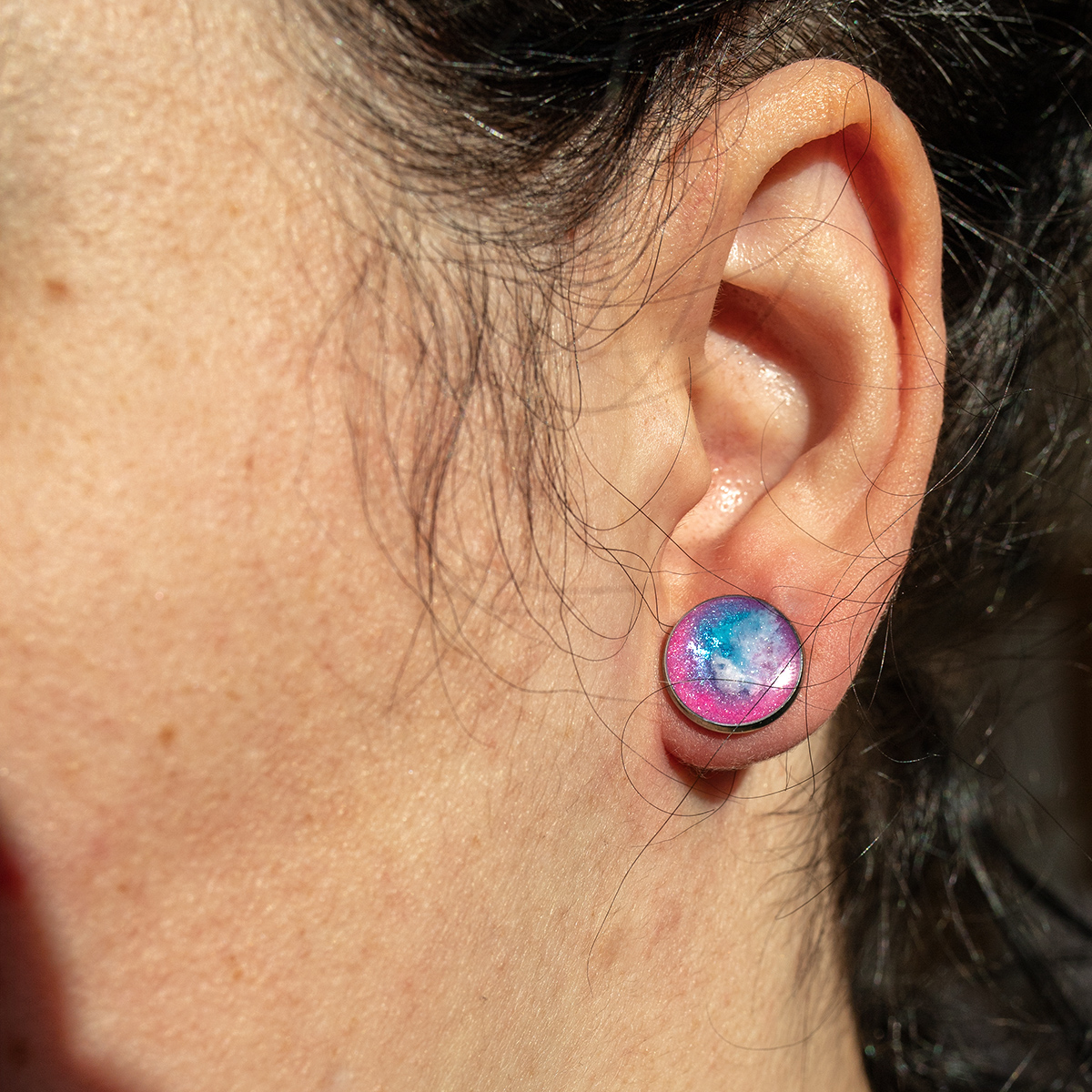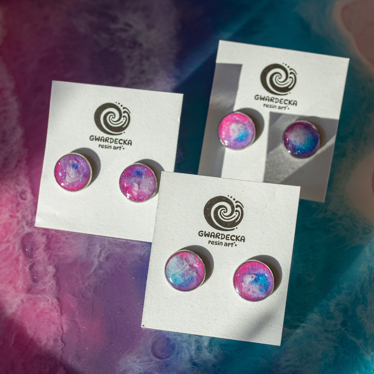 Kolczyki maluje 3 warstwami żywicy epoksydowej, by uzyskać delikatnie 3wymiarowy efekt.