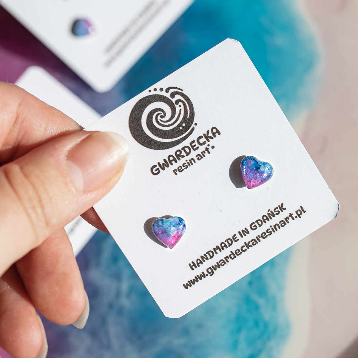 Mini serduszka o wymiarach ok 6mm x 6mm są unikatowe, ponieważ tworzę je, nakładając trzy warstwy żywicy epoksydowej, co nadaje głębi kolorom i sprawia, że nie istnieją dwa identyczne egzemplarze, chociaż są one zachowane w danej kolorystyce, oraz stylistyce.