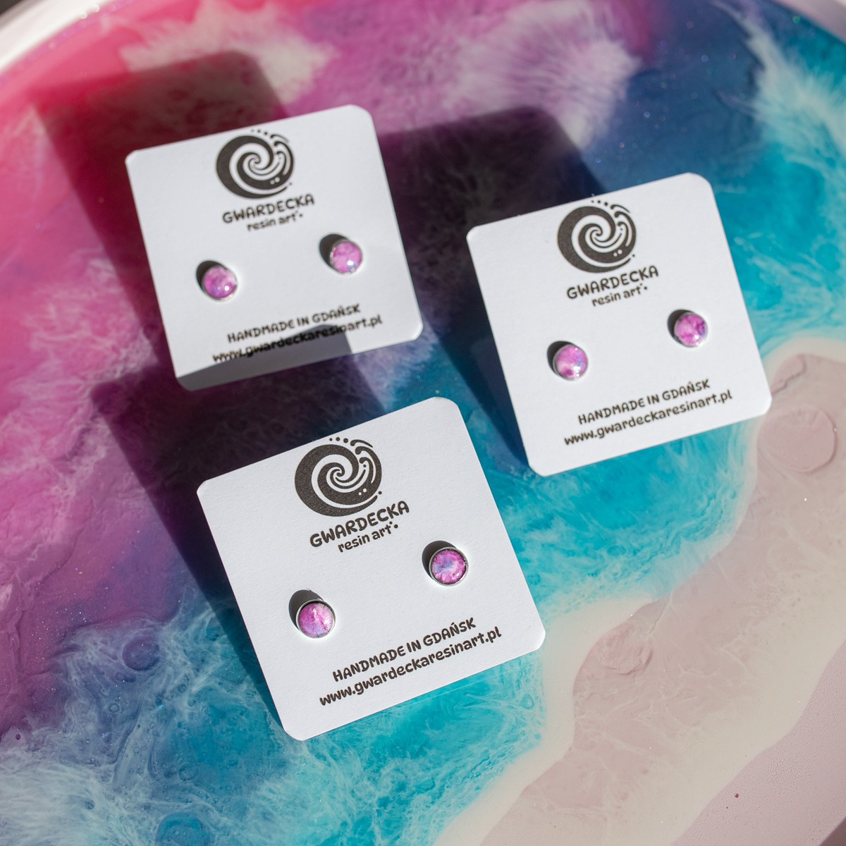 Mini sztyfty o średnicy 6mm są unikatowe, ponieważ tworzę je, nakładając trzy warstwy żywicy epoksydowej, co nadaje głębi kolorom i sprawia, że nie istnieją dwa identyczne egzemplarze, chociaż są one zachowane w danej kolorystyce, oraz stylistyce.