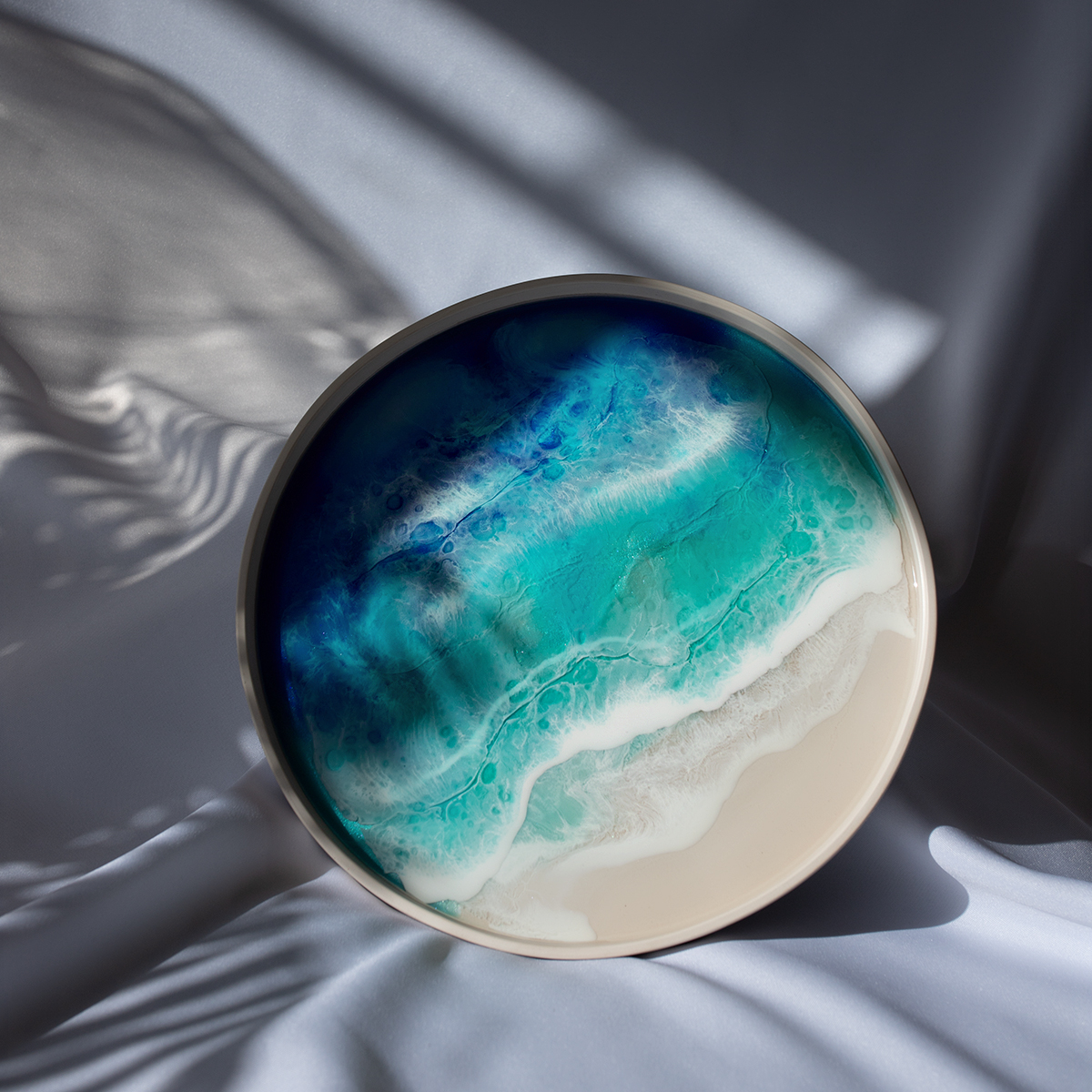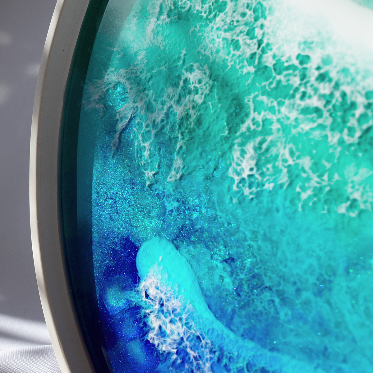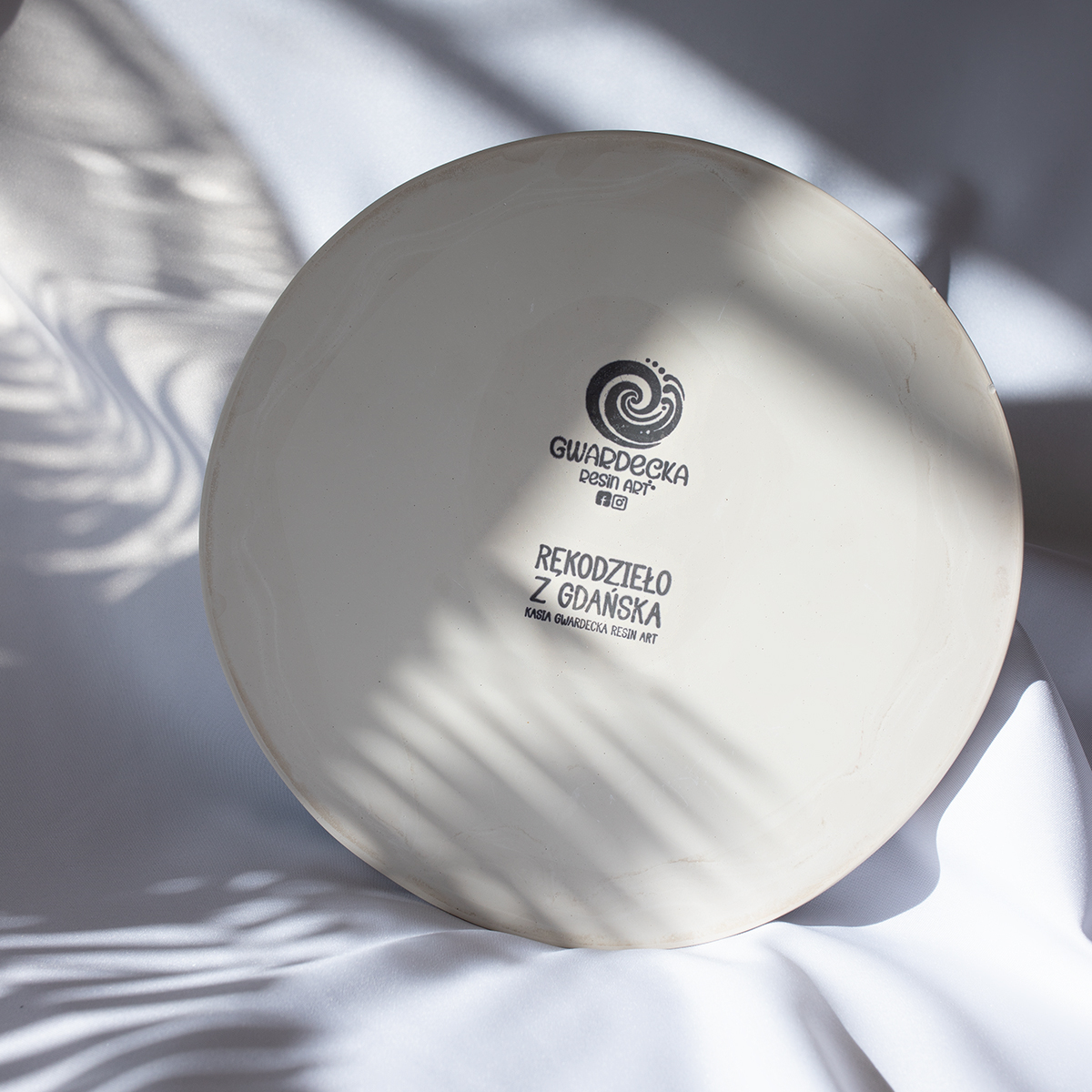 Taca malowana żywicą epoksydową techniką warstwową Ø30 cm, na spodzie gipsowym