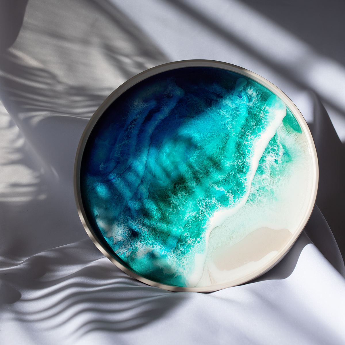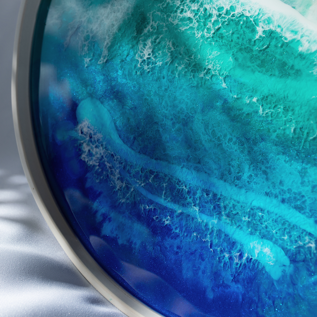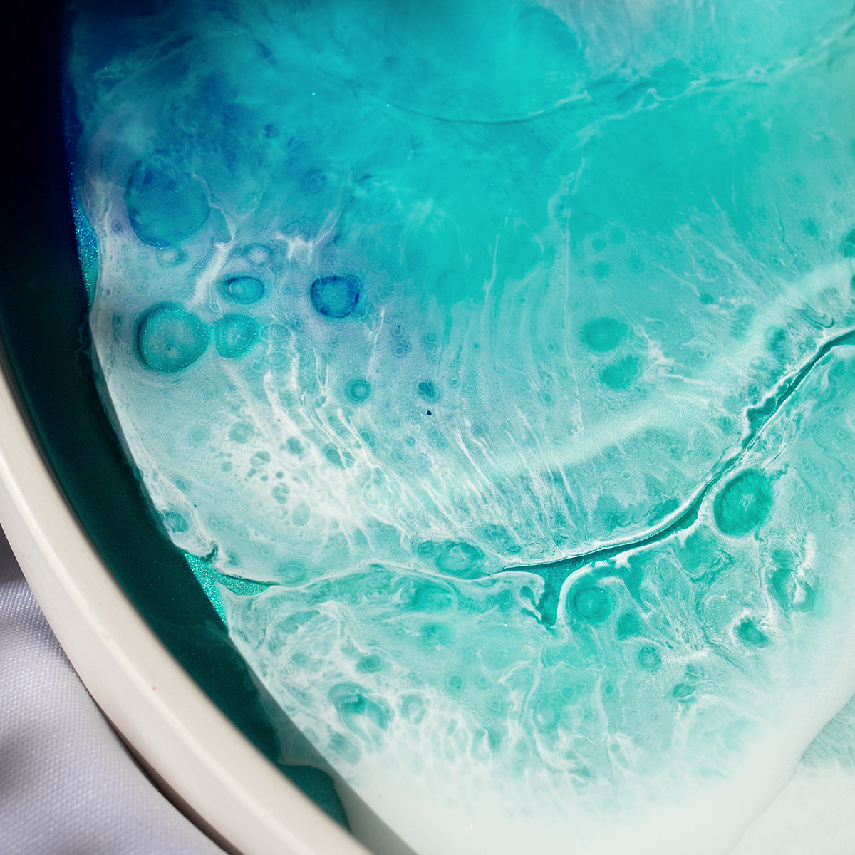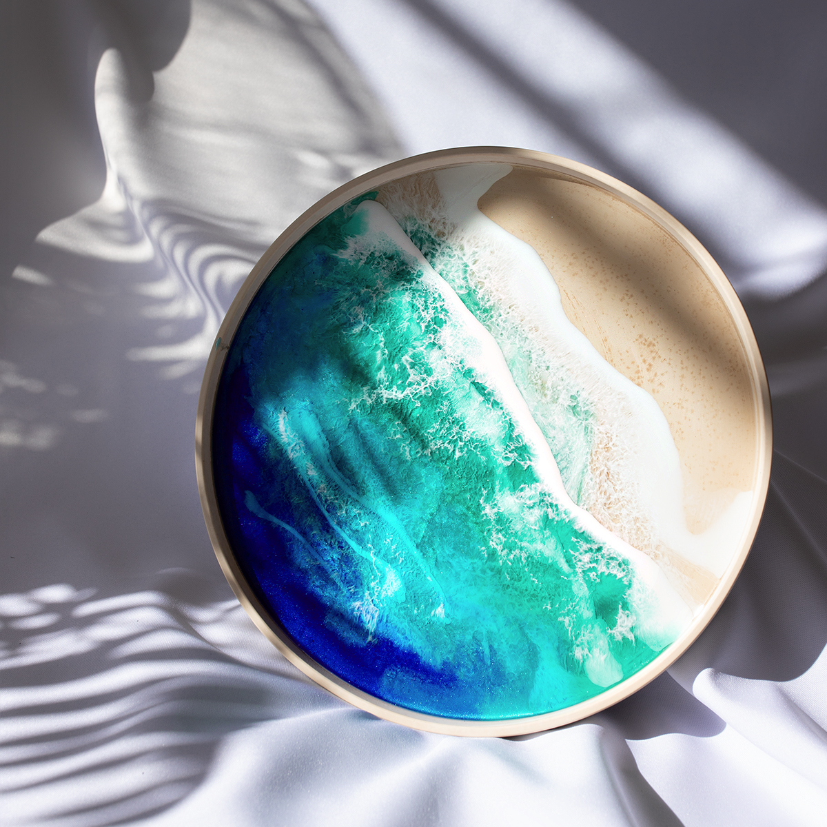 Taca malowana żywicą epoksydową techniką warstwową Ø30 cm, na spodzie gipsowym