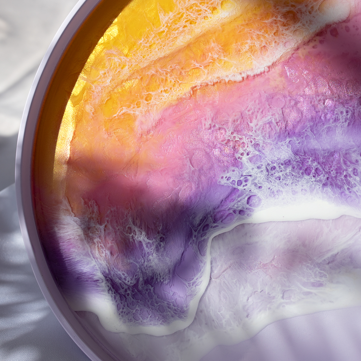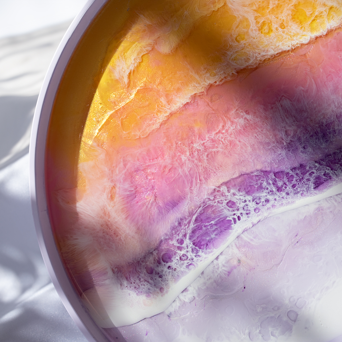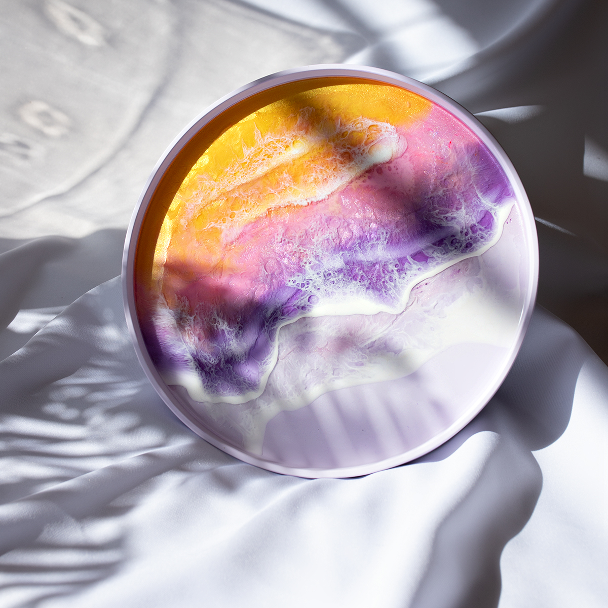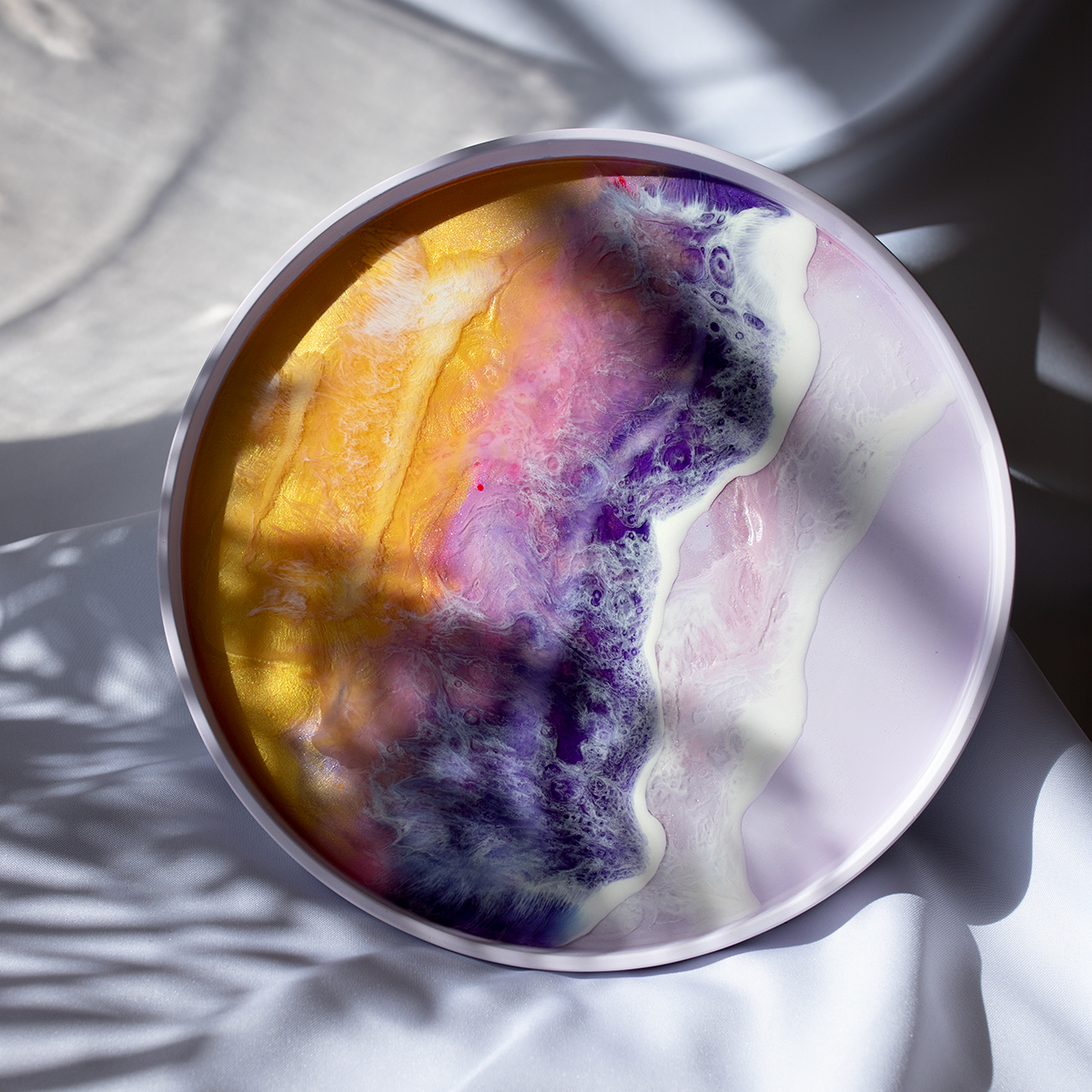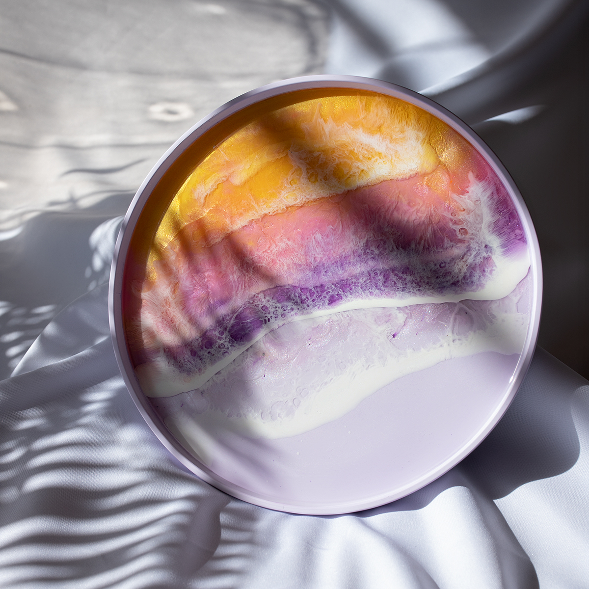 Taca malowana żywicą epoksydową techniką warstwową Ø30 cm, na spodzie gipsowym